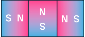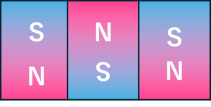 【 お互いに引き合うS極とN極が向かい合うようにした通常の配置 】